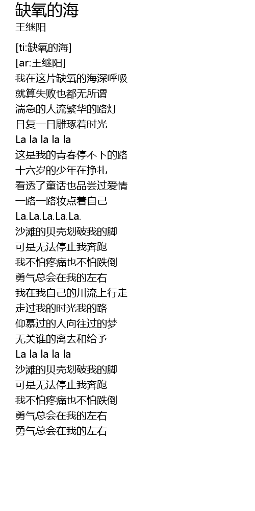 | [00:08.585] | 我在这片缺氧的海深呼吸 |