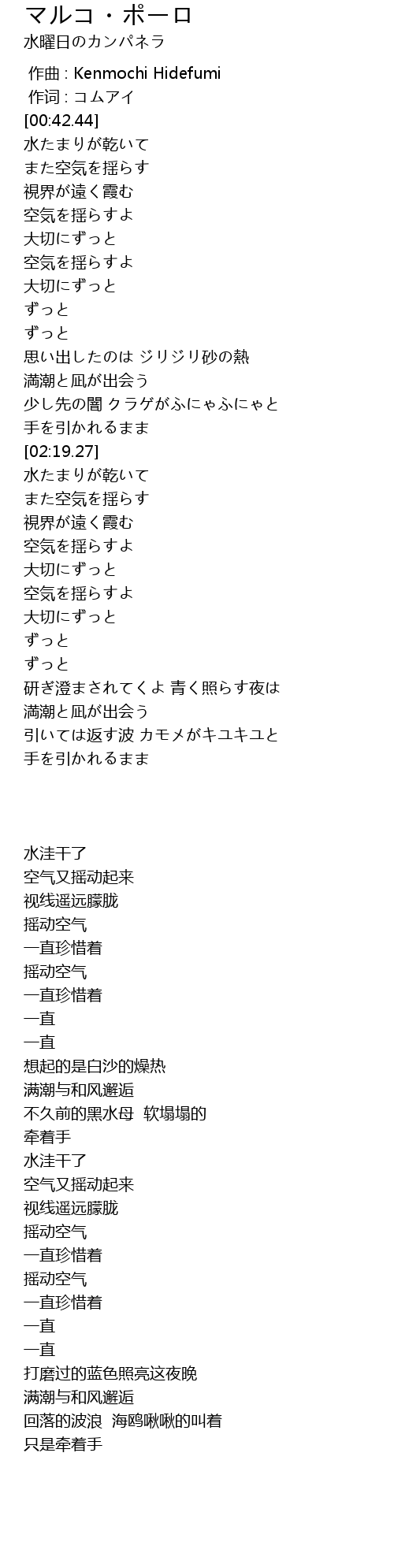 | [04:02.61] | 引いては返す波 カモメがキユキユと |