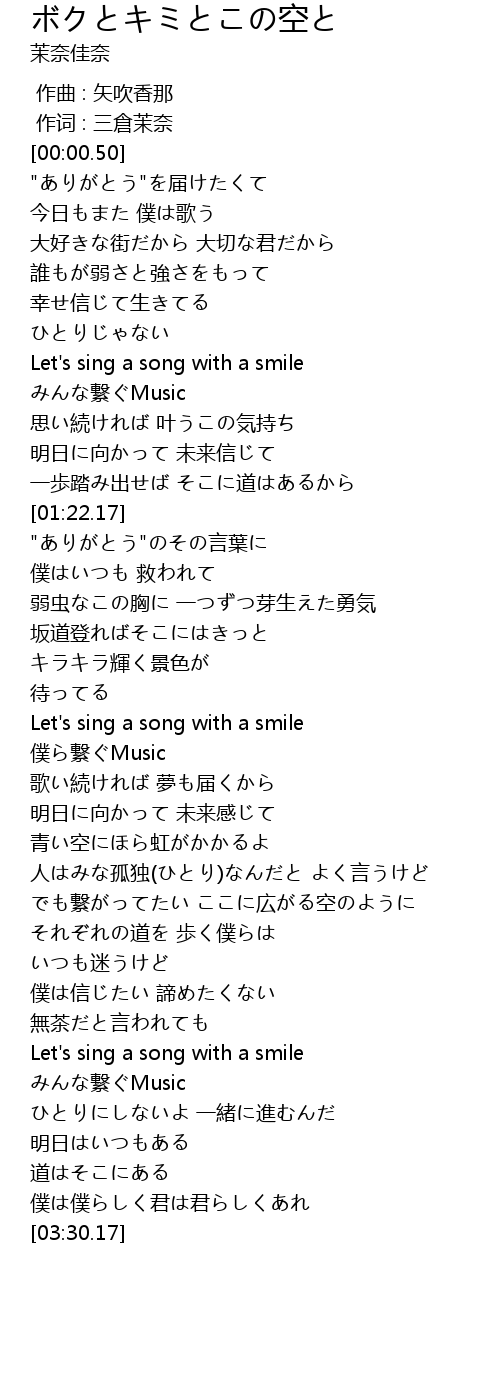 | [03:21.24] | 僕は僕らしく君は君らしくあれ |