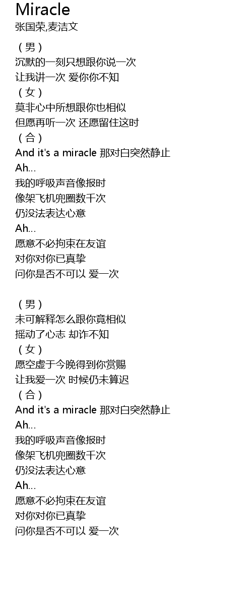 歌曲 Miracle