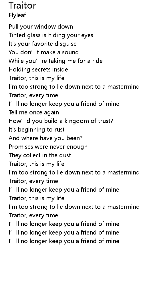 | [00:26] | Traitor, this is my life |