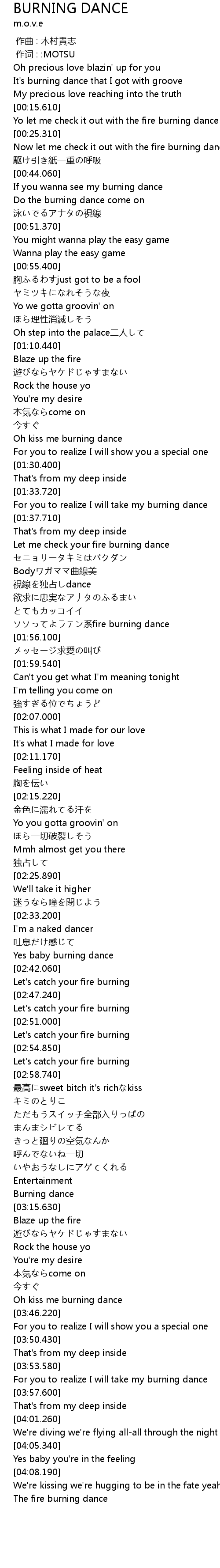 | [03:43.660] | Oh kiss me burning dance |