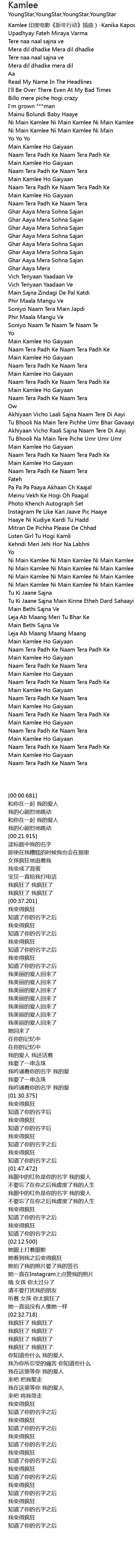 | [02:33.58] | Ni Main Kamlee Ni Main Kamlee Ni Main Kamlee Kamlee Kamlee |