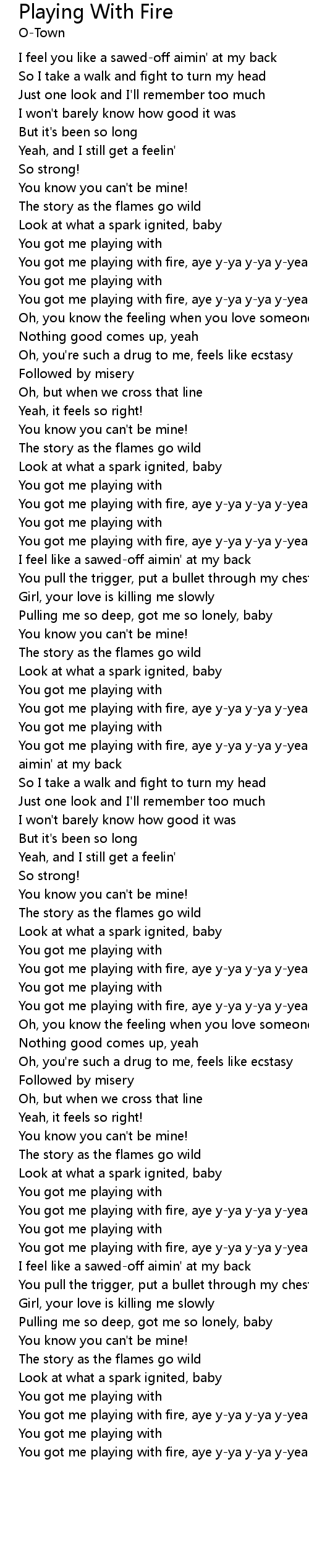 You got me playing with fire, aye y-ya y-ya y-yeah
