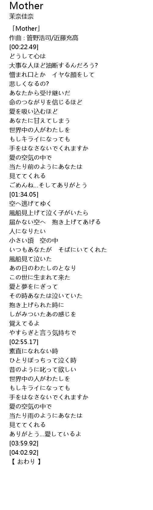 | [00:01.49] | 「Mother」 |