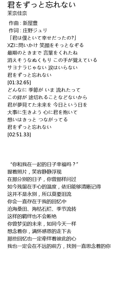 | [02:17.74] | 想念着你,满怀感恩的走下去 |