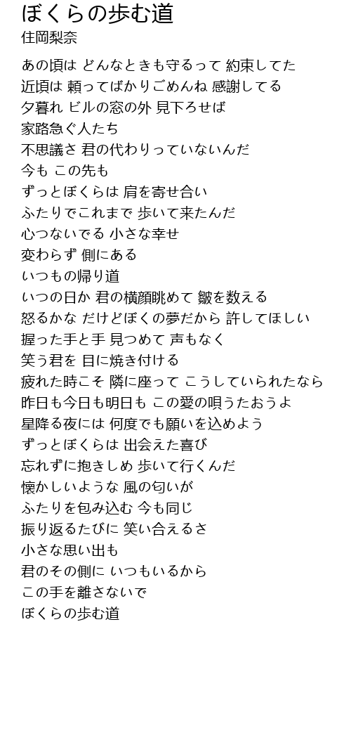 | 疲れた時こそ 隣に座って こうしていられたなら | |