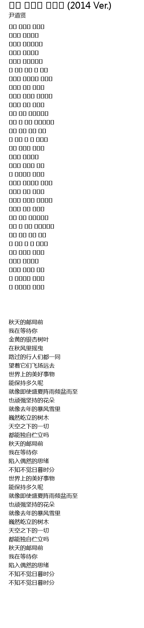가을 우체국 앞에서 (2014 Ver.) 歌词