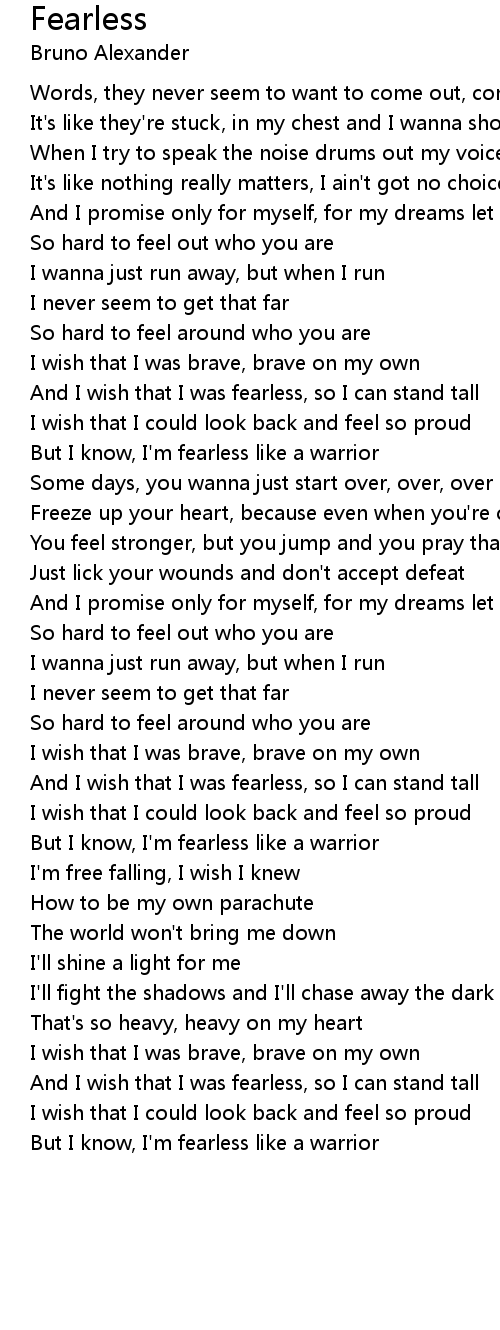 And I wish that I was fearless, so I can stand tall |