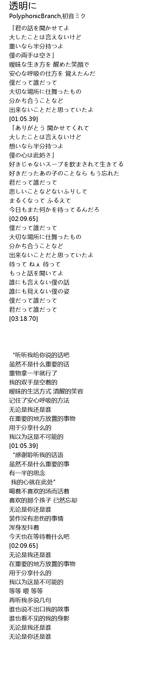 | 歌曲 | 透明に |