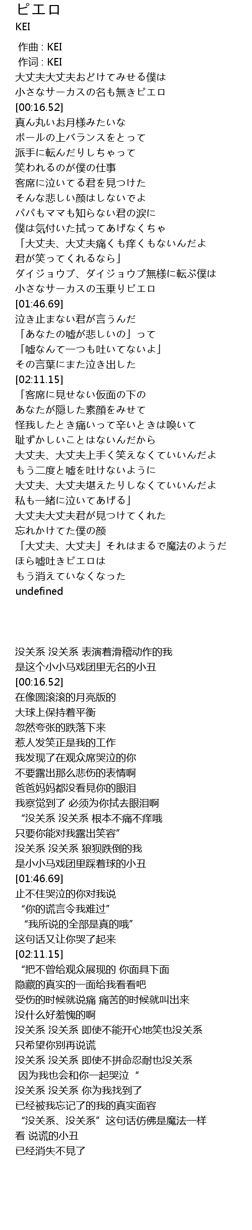 | [01:38.19] | 小さなサーカスの玉乗りピエロ |