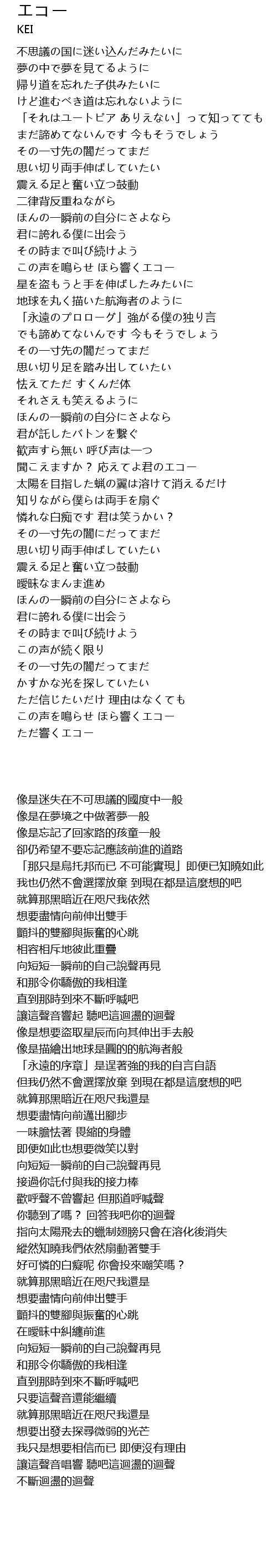 | [03:01.44] | 你聽到了嗎? 回答我吧你的迴聲 |