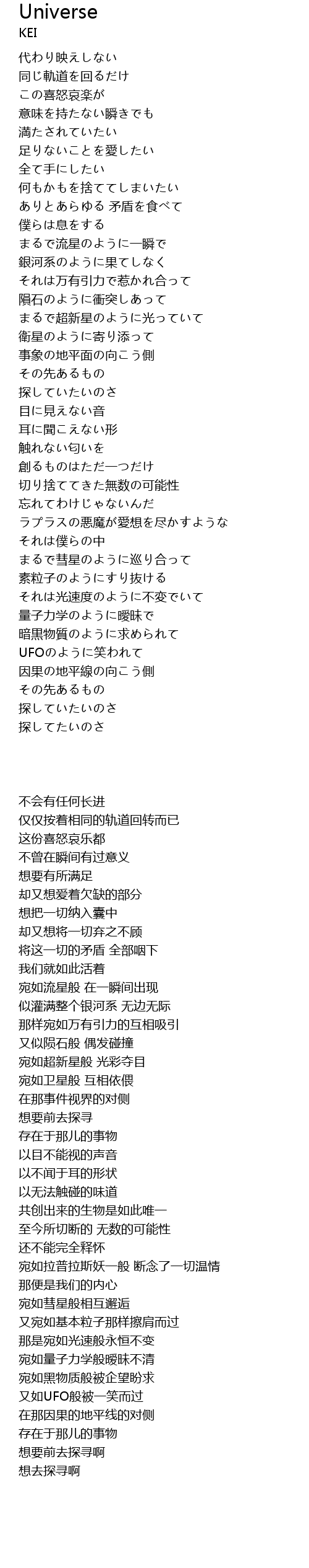 | 歌曲 | Universe |