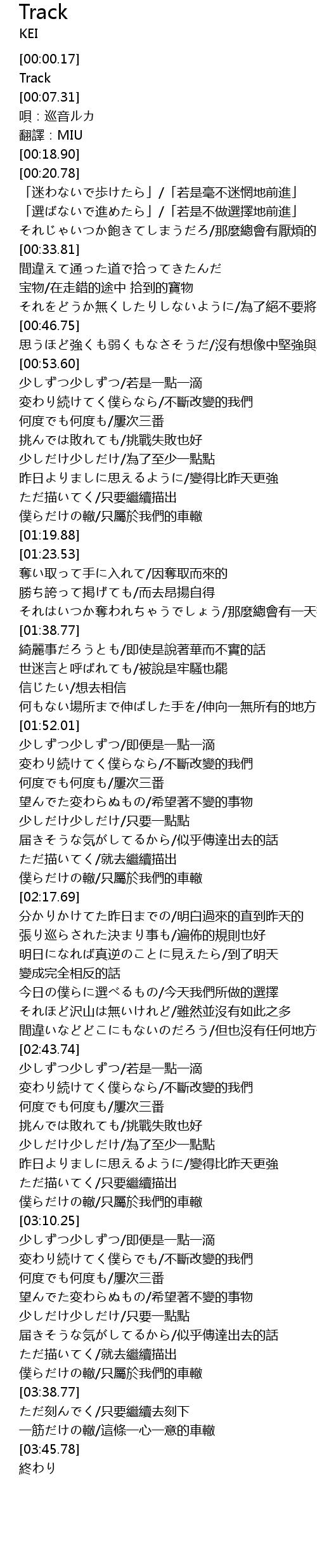 | [03:35.15] | 僕らだけの轍/只屬於我們的車轍 |