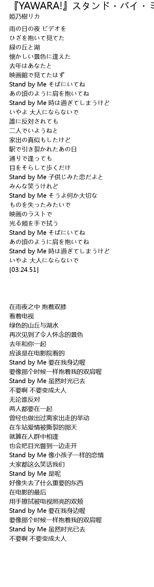 | [03:11.34] | Stand by Me 時は過ぎてしまうけど |