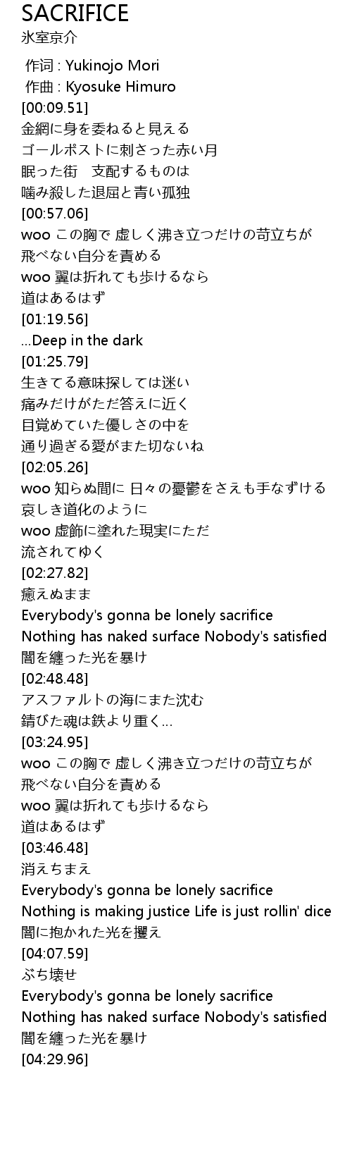 | [04:12.20] | Everybody's gonna be lonely sacrifice |