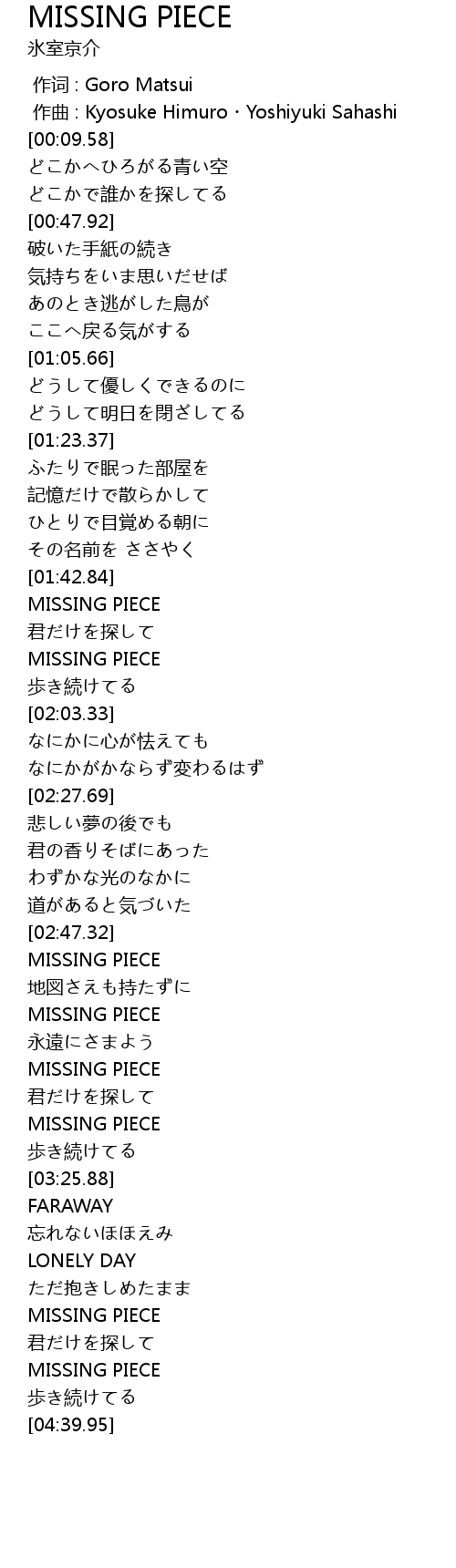 | [02:58.01] | MISSING PIECE |