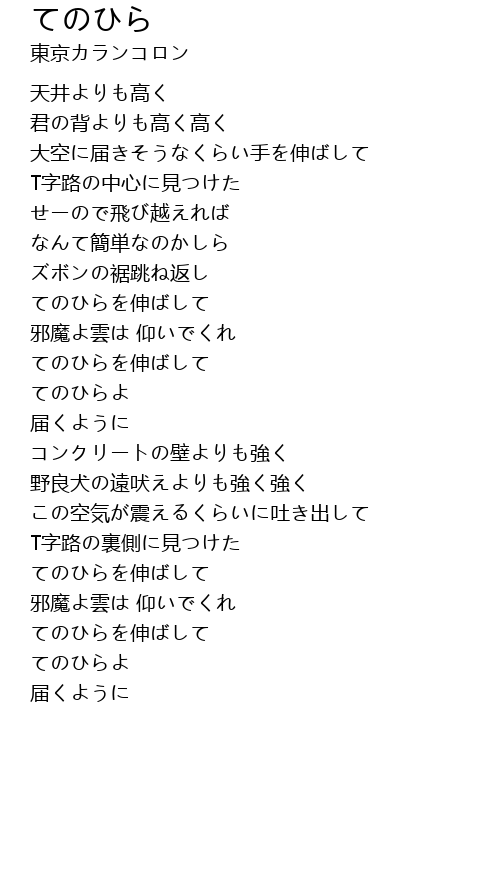 | 歌曲 | てのひら |