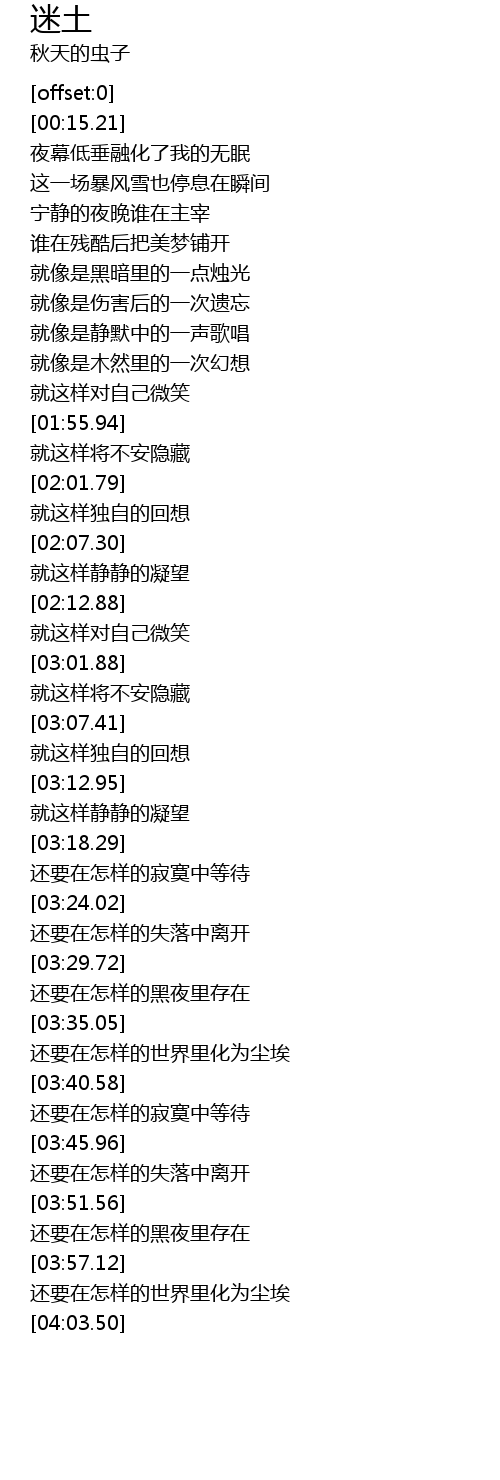| [03:35.99] | 还要在怎样的世界里化为尘埃 |