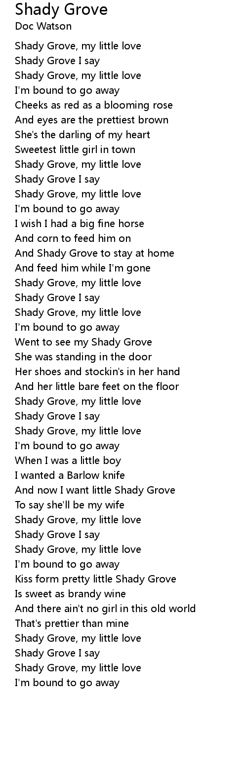 Shady Grove, my little love |