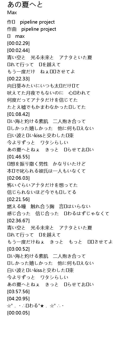 | [00:03.24] | 青い空と 光る未来と アナタといた夏 |