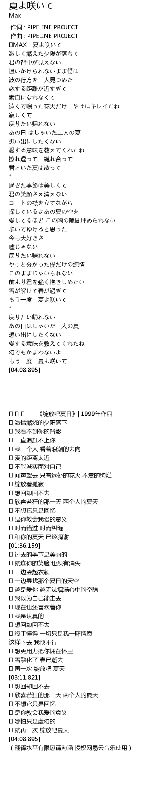 | [00:00.200] | ♪MAX - 夏よ咲いて |
