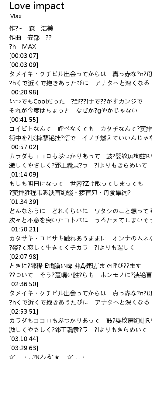 | [03:32.98] | ☆°.・∴?Kわる°★. ☆° ∴・ |