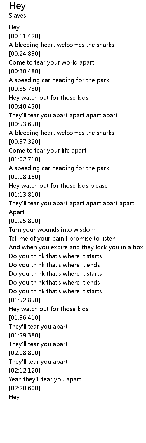 | [00:42.560] | They'll tear you apart apart apart apart |