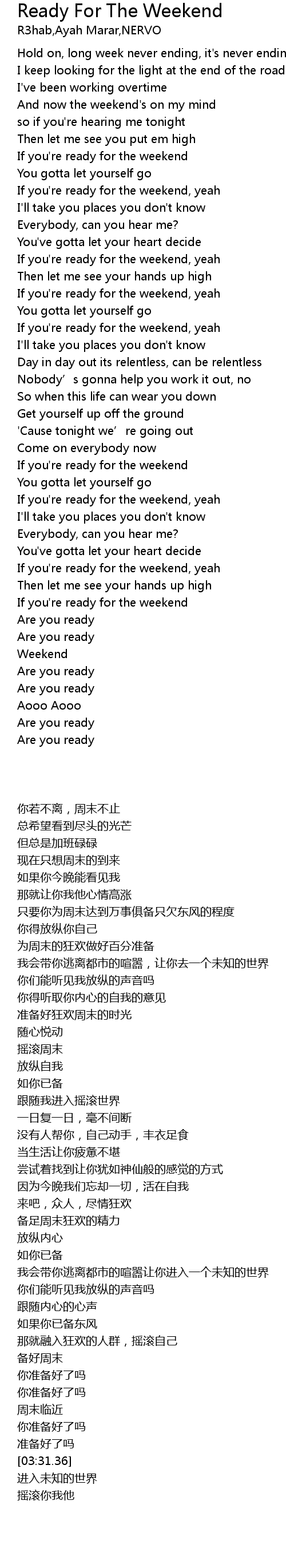 | [00:59.24] | 准备好狂欢周末的时光 |