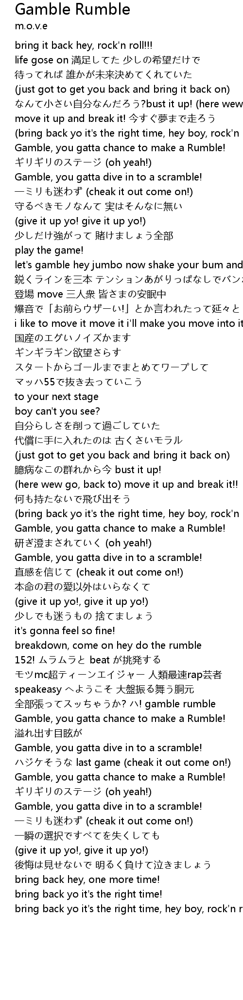 | 歌曲 | Gamble Rumble |