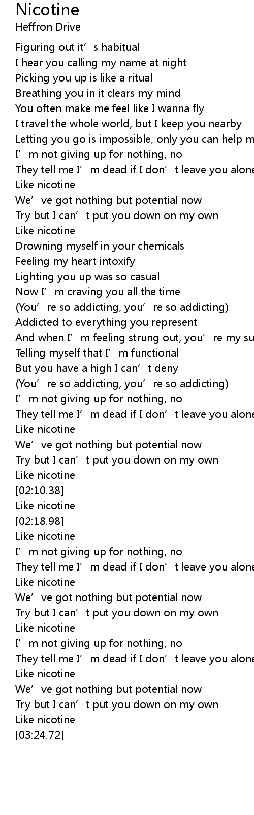 | [01:25.94] | You' re so addicting, you' re so addicting |