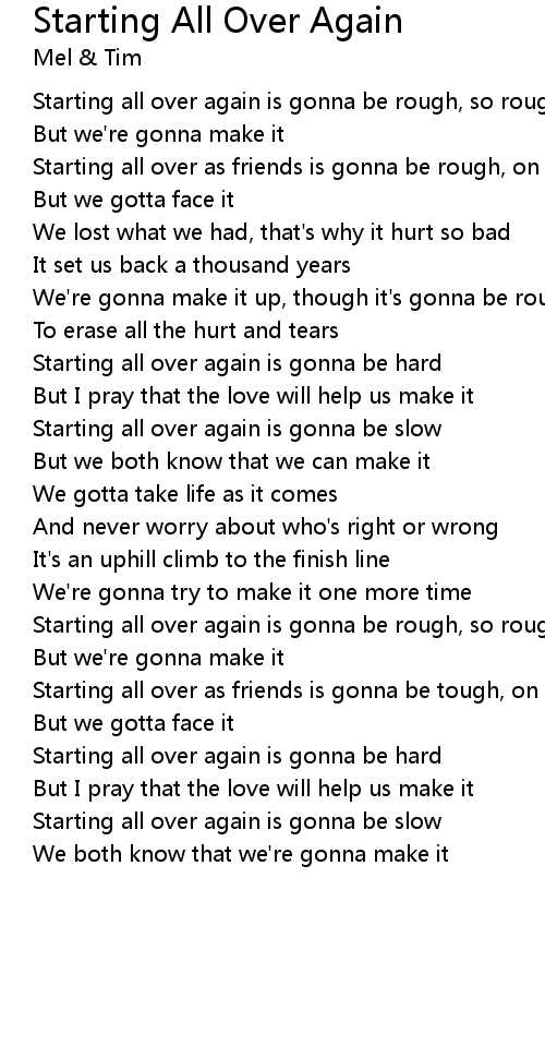 Starting all over again is gonna be hard |