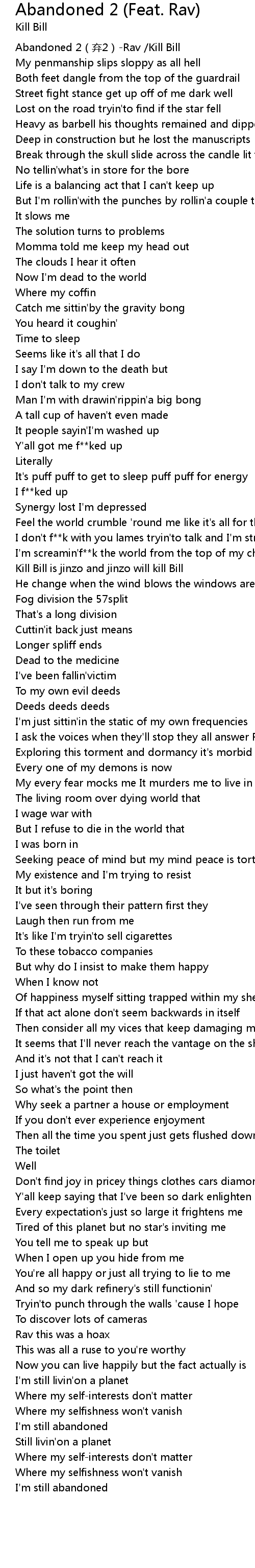 | [00:00.00] | Abandoned 2 qì 2 Rav Kill Bill |