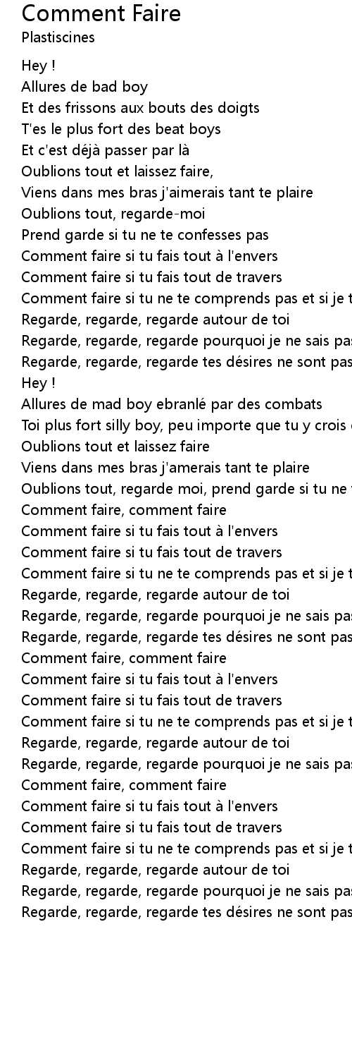 | Comment faire si tu ne te comprends pas et si je t' indiffe re | |