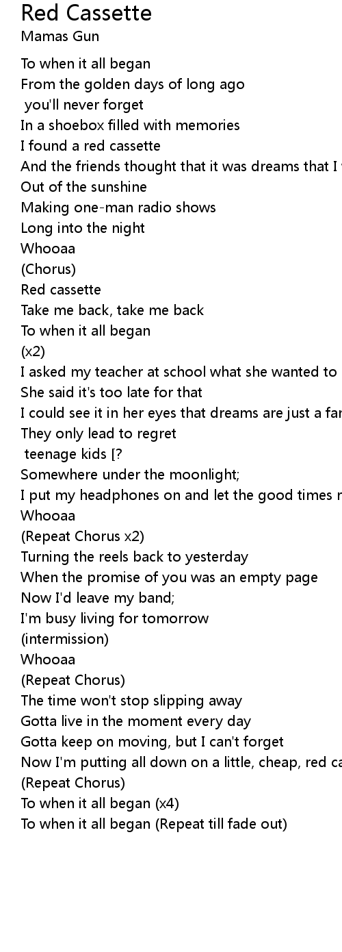 Now I'm putting all down on a little, cheap, red casette |