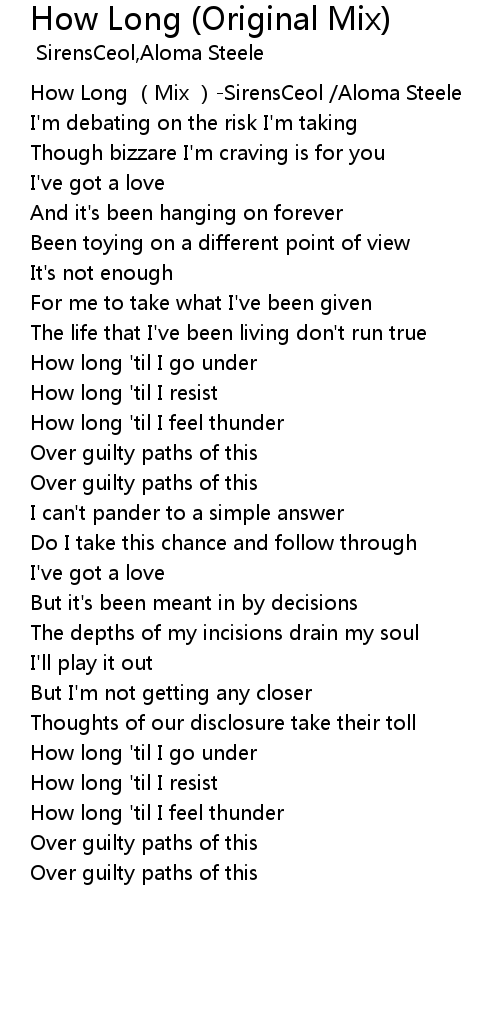 | [00:00.00] | How Long Mix SirensCeol Aloma Steele |