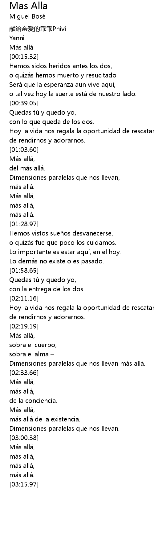 | [01:53.65] | Lo dema s no existe o es pasado. |