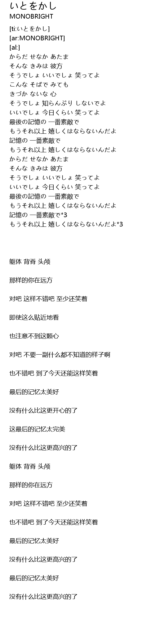 | [03:24.93] | 最後の記憶の 一番素敵で |