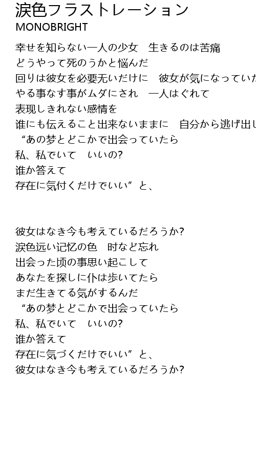 | 歌曲 | 涙色フラストレーション |