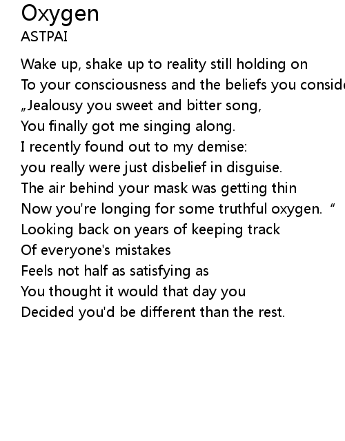 | Now you're longing for some truthful oxygen.“ | |