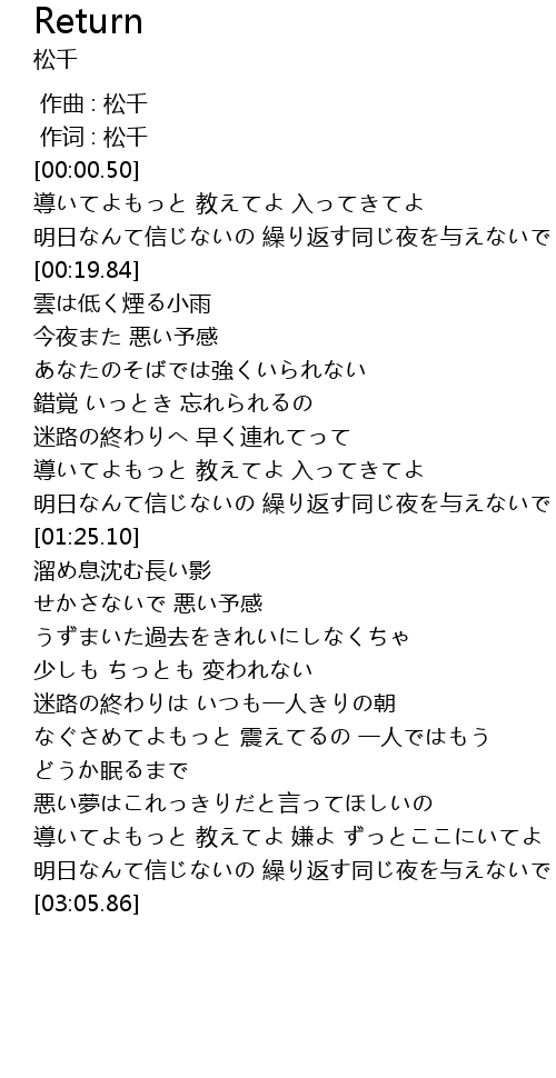 | [00:49.93] | 迷路の終わりへ 早く連れてって |