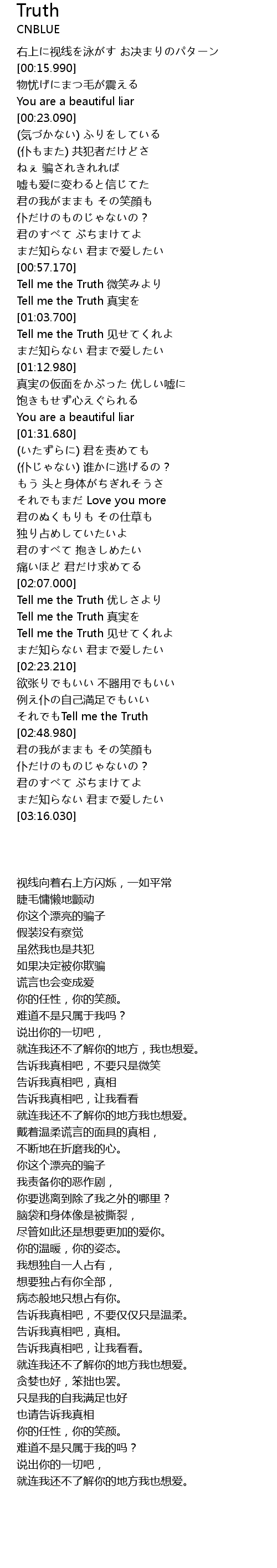 | [02:11.210] | Tell me the Truth 真実を |