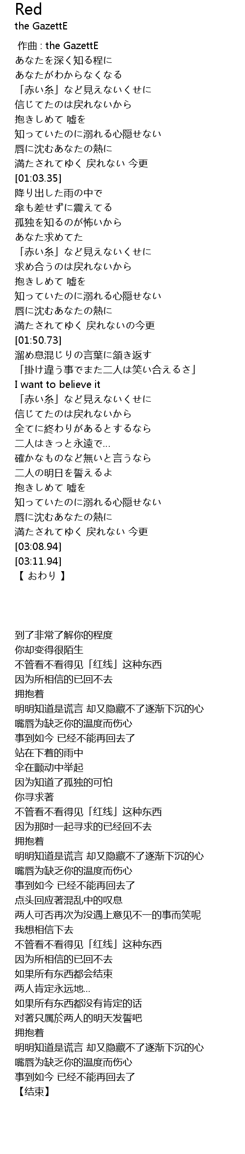 | [00:00.00] | 作曲 : the GazettE |