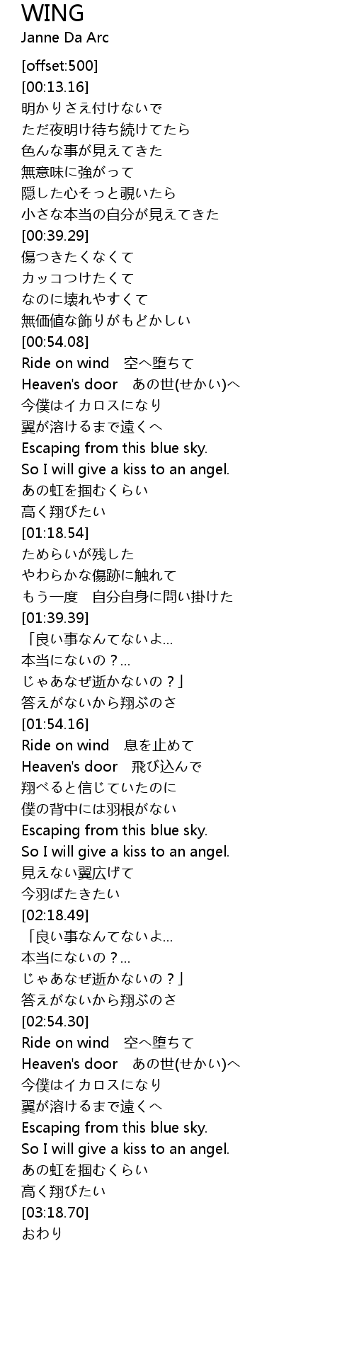 | [02:03.23] | 僕の背中には羽根がない |