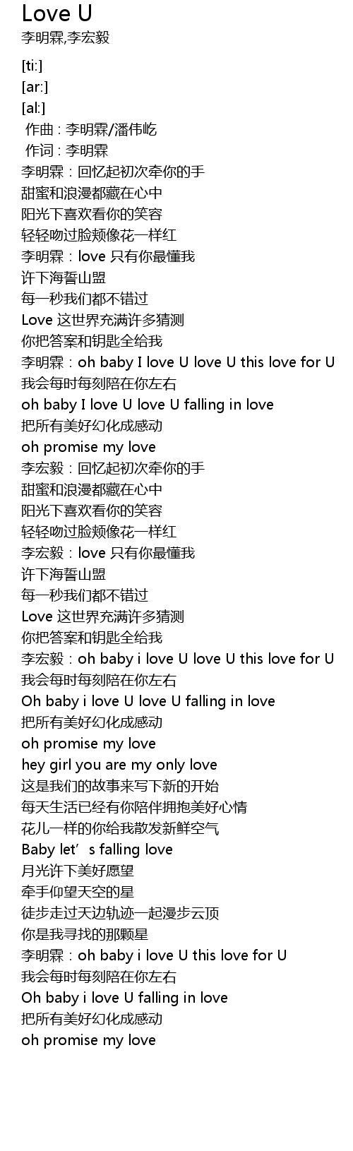 | [02:55.41] | 李明霖:oh baby i love U this love for U |