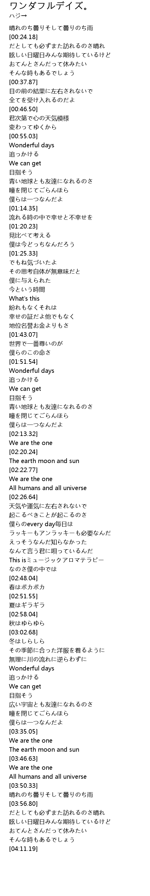 | [01:00.31] | 青い地球とも友達になれるのさ |