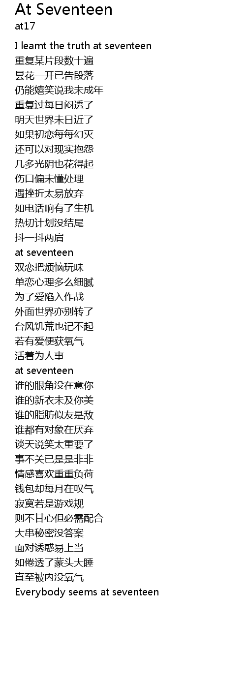 | 歌曲 | At Seventeen |