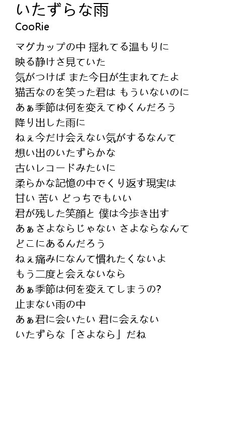 | 歌曲 | いたずらな雨 |