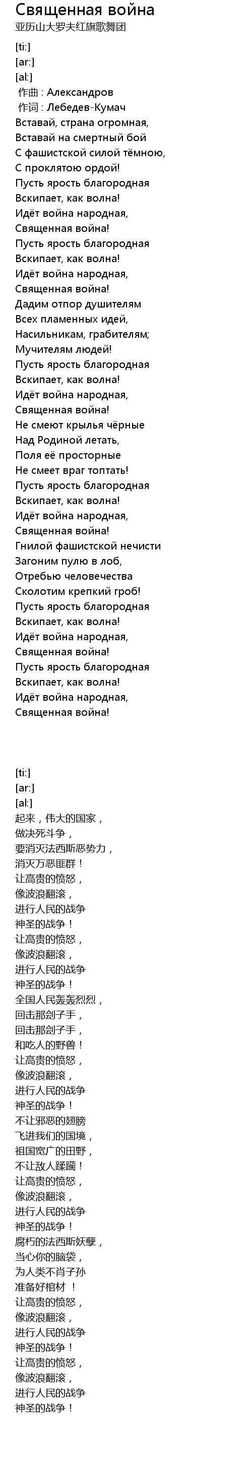 | [00:01.00] | 作词 : Лебедев-Кумач |