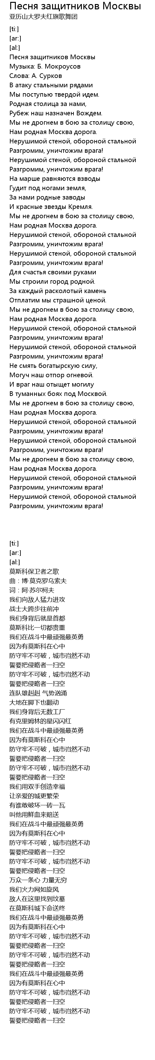 | [00:01.26] | 莫斯科保卫者之歌 |